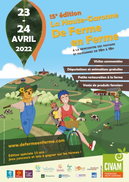 Les agricultrices et agriculteurs du CIVAM vous invitent à leur rencontre à l'occasion de la 15ème édition de "La Haute-Garonne De Ferme en Ferme" qui aura lieu les 23 et 24 avril dans 29 fermes.